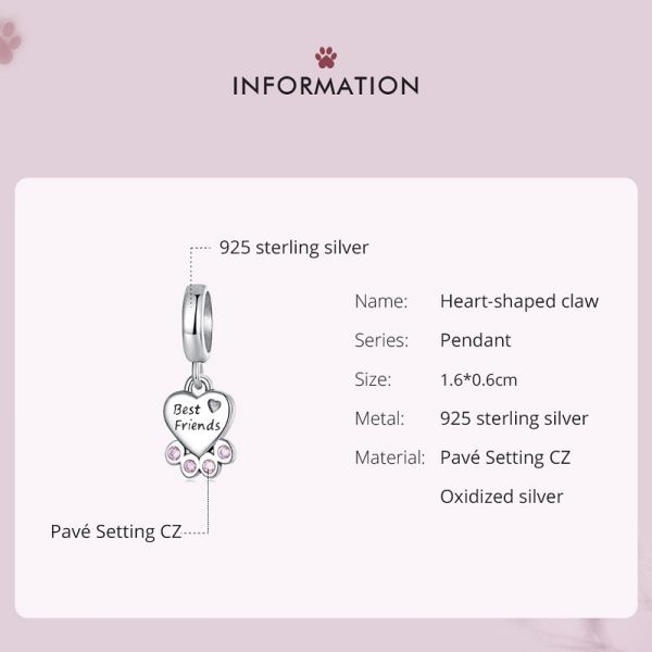 Agera srebrni privezak SCX134 je deo naše fashion kolekcije. Ručno završen srebrni privezak u obliku srca sa motivom šape. Napravljen je od izuzetno kvalitetnog srebra 925 sa kubnim cirkonima. Može se staviti na narukvicu ili ogrlicu. Privezak je kompatibilan i sa proizvodima drugih poznatih proizvodjača nakita.