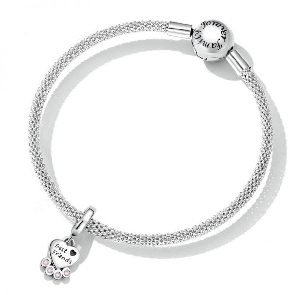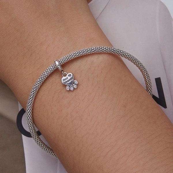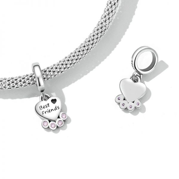 Srebrni privezak SCC452 je deo naše fashion kolekcije. Ručno završen srebrni privezak sa prelepim motivom šapice i koskice. Napravljen od izuzetno kvalitetnog srebra 925 sa kubnim cirkonima AAA klase, kombinovan sa fantastičnim dizajnom. Može se nositi na narukvici ili ogrlici. Privezak je kompatibilan i sa proizvodima drugih poznatih proizvodjača nakita.