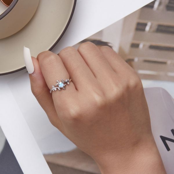 Srebrni prsten BSR309 je deo naše elegance kolekcije. "Vine and opal", ručno završen srebrni prsten sa opalom i prelepim prozirnim cirkonima. Napravljen od izuzetno kvalitetnog srebra 925, kombinovan sa jedinstvenim dizajnom.
