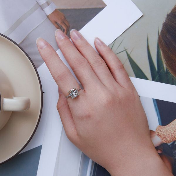 Srebrni prsten BSR339 je deo naše fashion kolekcije. "Four-leaf Clover", ručno završen srebrni prsten sa motivom deteline sa četiri lista i malim cirkonom. Napravljen od izuzetno kvalitetnog srebra 925, kombinovan sa unikatnim dizajnom.