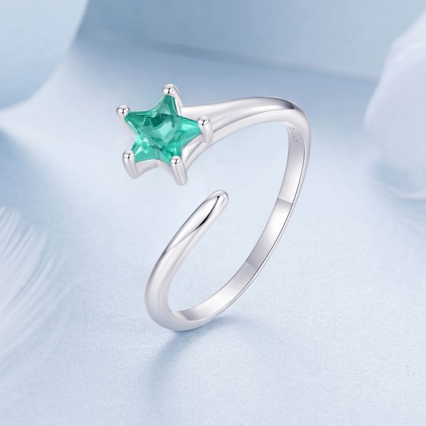 Elegantni podesivi srebrni prsten BSR535-E. Istaknite svoj stil sa ovim jedinstvenim podesivim prstenom sa motivom meteora. Prsten je napravljen od izuzetno kvalitetnog srebra 925, zvezdica od zelenog stakla donosi notu mističnog sjaja i sofisticiranosti vašem izgledu. Idealan je za posebne prilike ili kao svakodnevni dodatak vašoj kolekciji nakita. Poklonite sebi ili voljenoj osobi ovu divnu kombinaciju elegancije i jedinstvenosti.