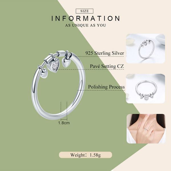 Srebrni prsten SCR215 - je deo naše fashion kolekcije. Ručno završen srebrni prsten sa privescima u obliku srca i prelepim kubnim cirkonom. Napravljen je od izuzetno kvalitetnog srebra 925, kombinovan sa jedinstvenim dizajnom.