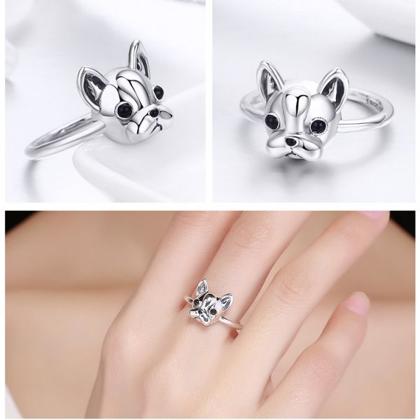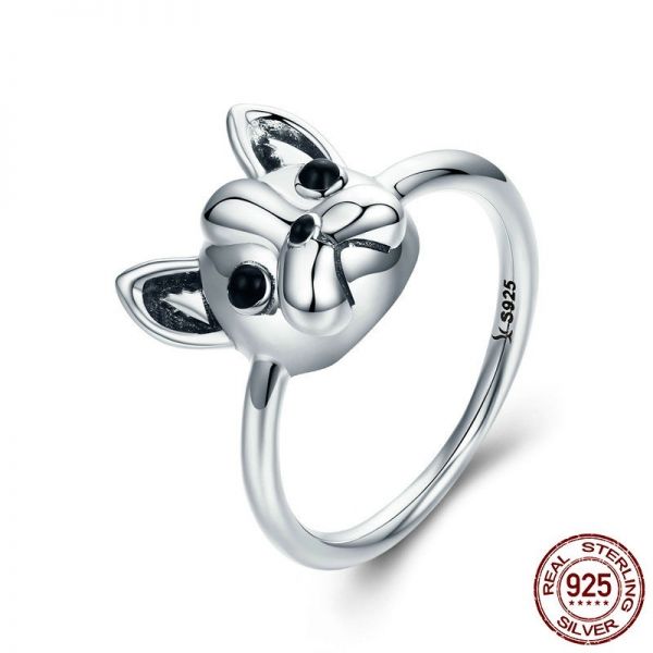 Srebrni prsten SCR261 - je deo naše fashion kolekcije. "Cute french bulldog" ručno završen srebrni prsten u obliku francuskog buldoga, napravljen od izuzetno kvalitetnog srebra 925, kombinovan sa jedinstvenim dizajnom.