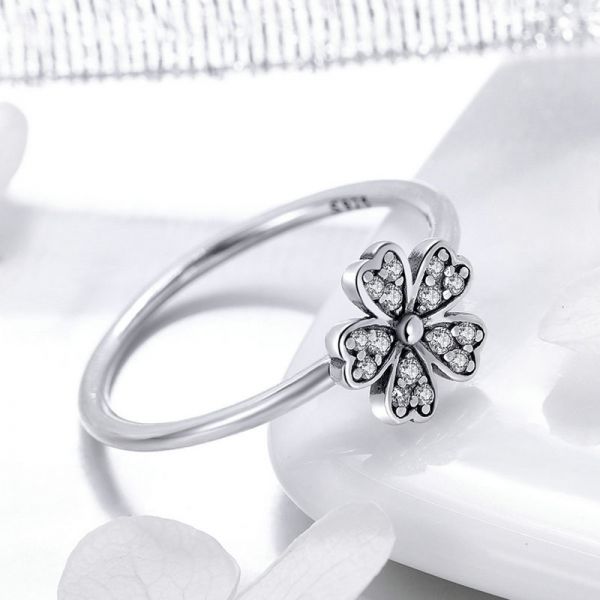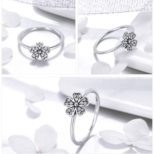 Srebrni prsten SCR398 - je deo naše elegance kolekcije. "Contracted daisy" ručno završen srebrni prsten u obliku bele rade sa prelepim kubnim cirkonima, napravljen od izuzetno kvalitetnog srebra 925, kombinovan sa jednostavnim dizajnom.
