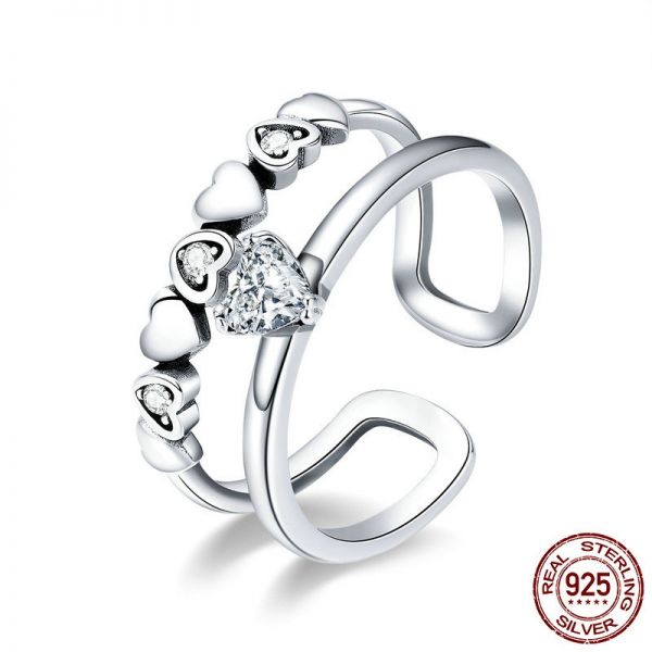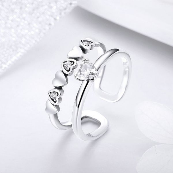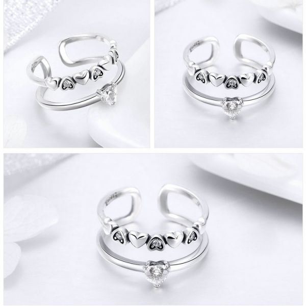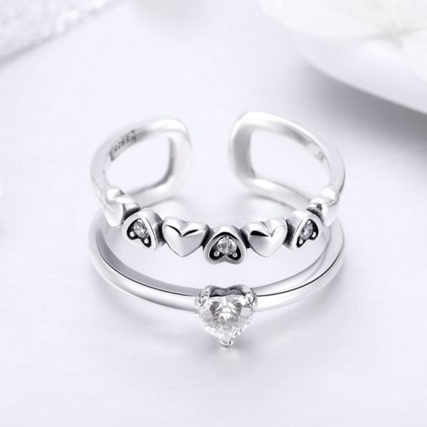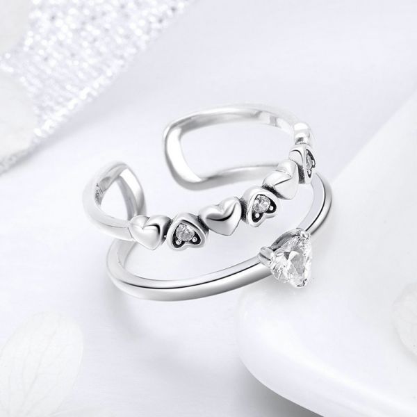 Srebrni prsten SCR429 - je deo naše elegance kolekcije. "Delicate Heart" ručno završen dva u jedan srebrni prsten ukrašen sa srcima i cirkonima. Napravljen od izuzetno kvalitetnog srebra 925, kombinovan sa fenomenalnim modnim dizajnom.