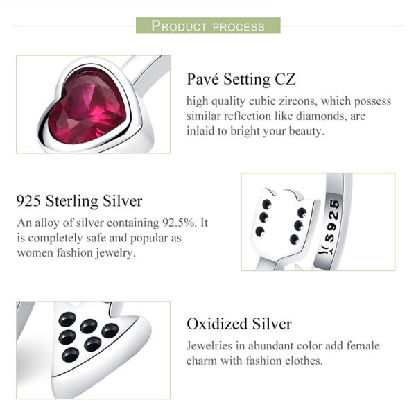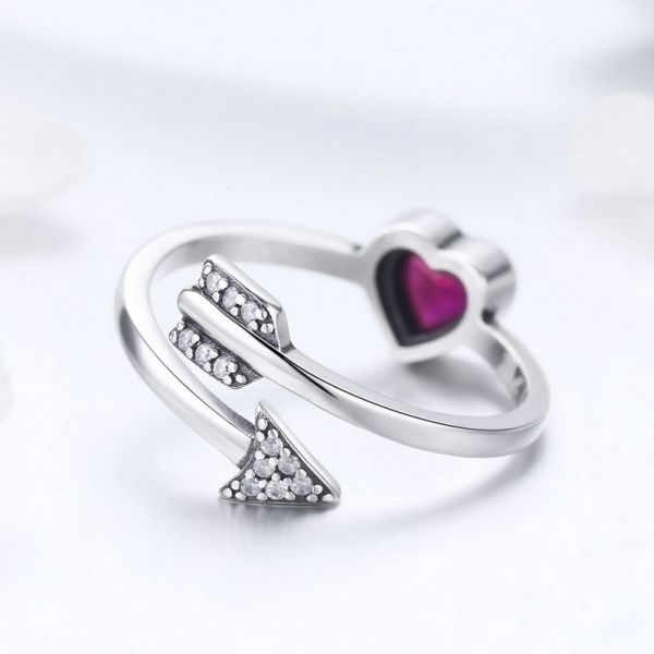 Srebrni prsten SCR436 - je deo naše fashion kolekcije. "Fall in love" ručno završen srebrni prsten sa motivom strele i crvenim cirkonom u obliku srca. Napravljen od izuzetno kvalitetnog srebra 925, kombinovan sa fantastičnim dizajnom.