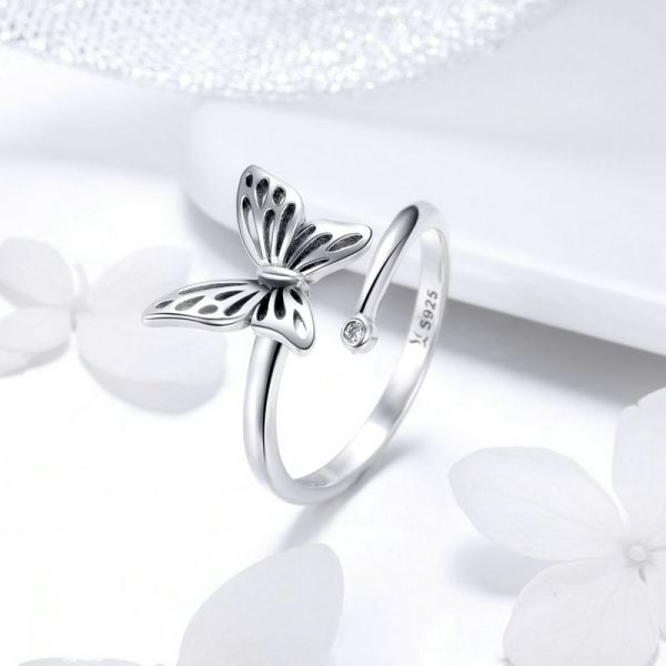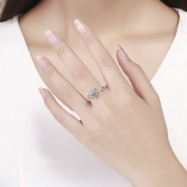 Srebrni prsten SCR448 - je deo naše elegance kolekcije. "Butterfly dream" ručno završen srebrni prsten sa motivom leptira. Napravljen je od izuzetno kvalitetnog srebra 925, sa kubnim cirkonima, kombinovan sa jedinstvenim dizajnom.