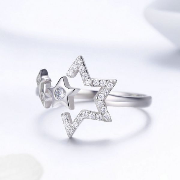 Srebrni prsten SCR452 - je deo naše elegance kolekcije. Ručno završen srebrni prsten sa motivima zvezda pun prelepih kubnih cirkona. Napravljen je od izuzetno kvalitetnog srebra 925, kombinovan sa fantastičnim dizajnom.