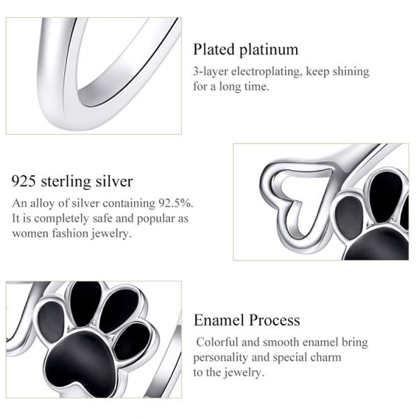 Srebrni prsten SCR584 - je deo naše fashion kolekcije. "Pet`s Footprint" ručno završen srebrni prsten sa motivom šapice i srca. Napravljen od izuzetno kvalitetnog srebra 925, kombinovan sa fantastičnim modnim dizajnom.