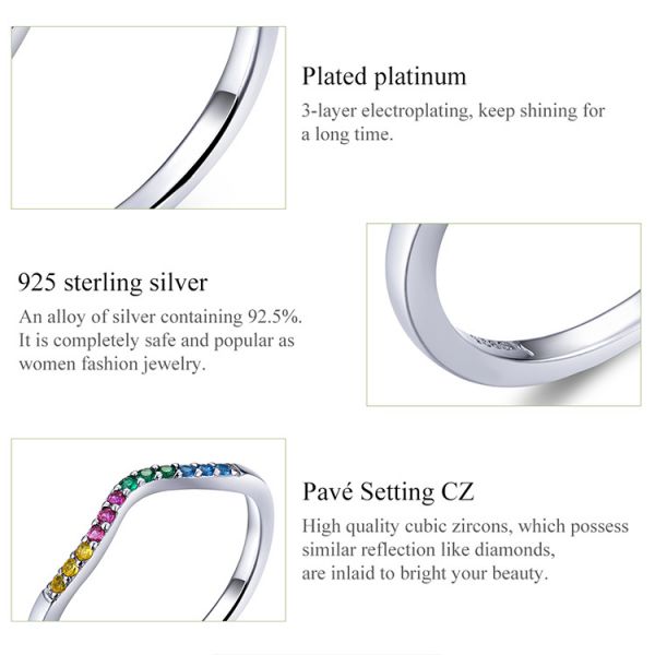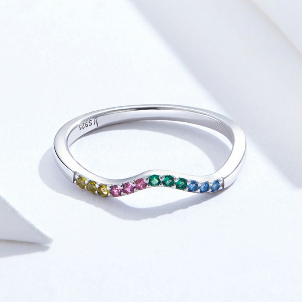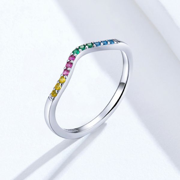 Srebrni prsten SCR636 - je deo naše fashion kolekcije. "Rainbow" ručno završen srebrni prsten sa cirkonima u boji duge, napravljen od izuzetno kvalitetnog srebra 925, kombinovan sa fantastičnim dizajnom.