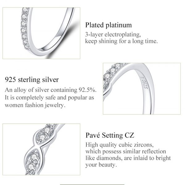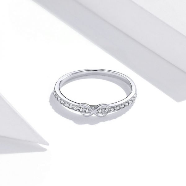 Srebrni prsten SCR691 - je deo naše elegance kolekcije. "Infinity symbol" ručno završen srebrni prsten sa simbolom za beskonačnost i predivnim prozirnim cirkonima. Napravljen je od izuzetno kvalitetnog srebra 925, kombinovan sa jedinstvenim dizajnom.