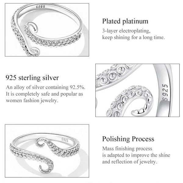 Srebrni prsten SCR842 je deo naše classic kolekcije. "Octopus whisker", ručno završen srebrni prsten sa motivom oktopoda. Napravljen je od izuzetno kvalitetnog srebra 925, kombinovan sa jedinstvenim dizajnom.