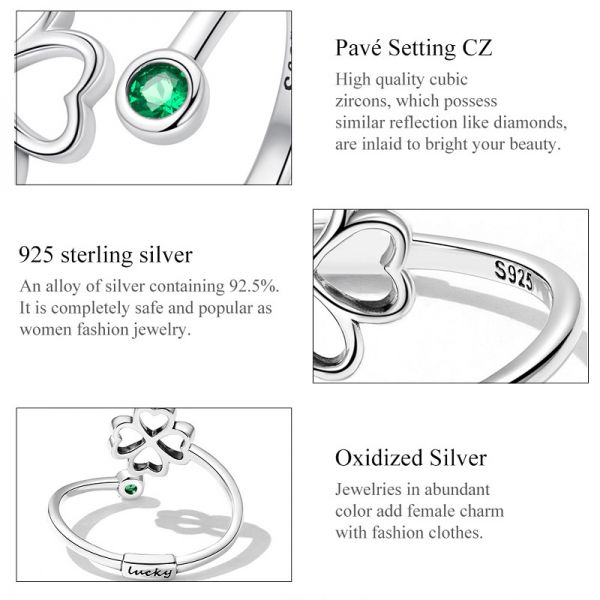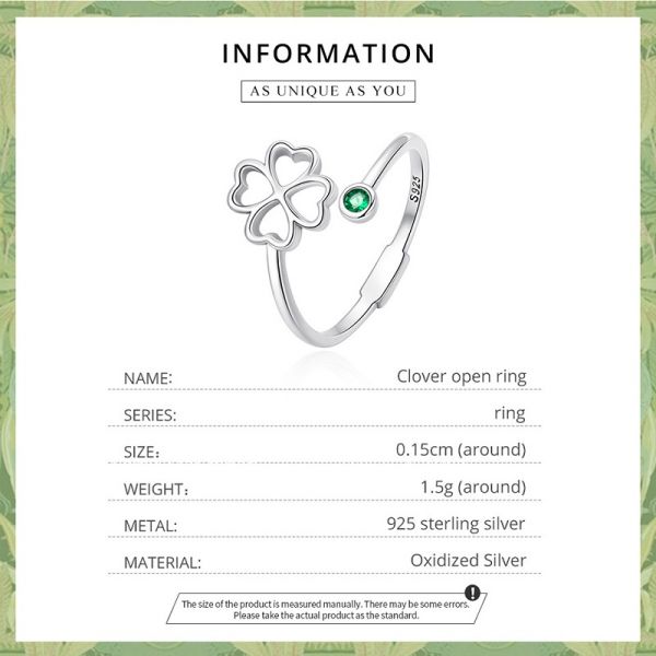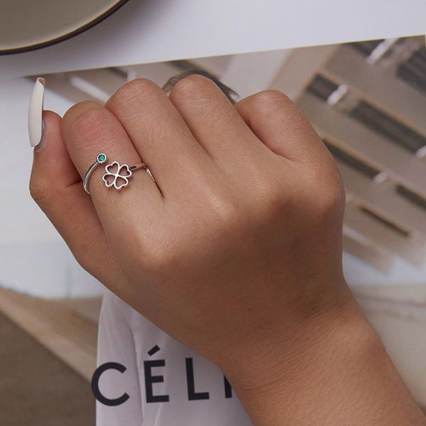 Srebrni prsten SCR843 je deo naše fashion kolekcije. "Clover", ručno završen srebrni prsten sa motivom deteline sa četiri lista i malim zelenim cirkonom. Napravljen od izuzetno kvalitetnog srebra 925, kombinovan sa jedinstvenim dizajnom.