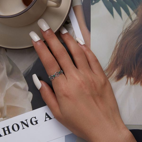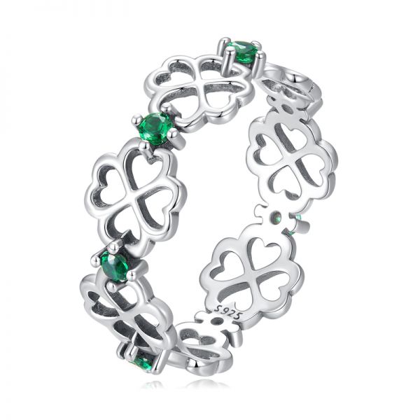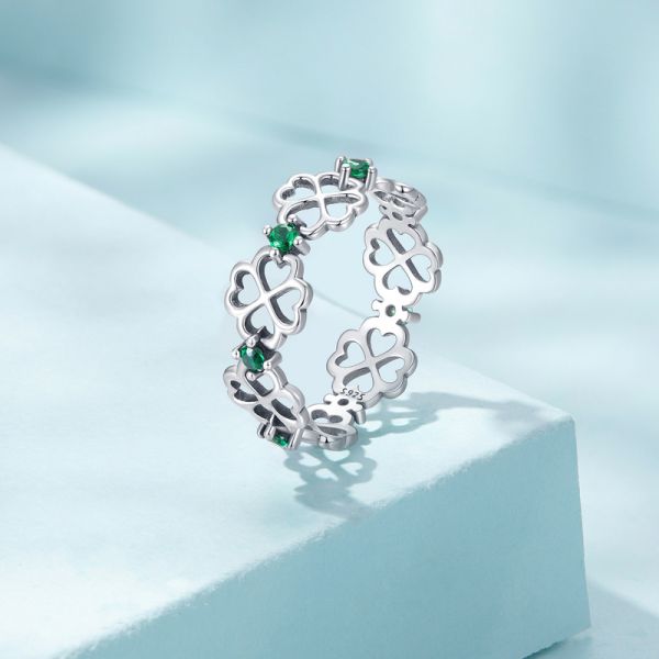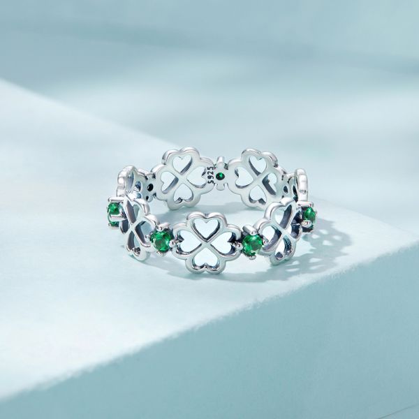 Srebrni prsten SCR859 je deo naše fashion kolekcije. "Four-leaf Clover", ručno završen srebrni prsten sa motivima deteline sa četiri lista i zelenim cirkonima. Napravljen od izuzetno kvalitetnog srebra 925, kombinovan sa unikatnim dizajnom.